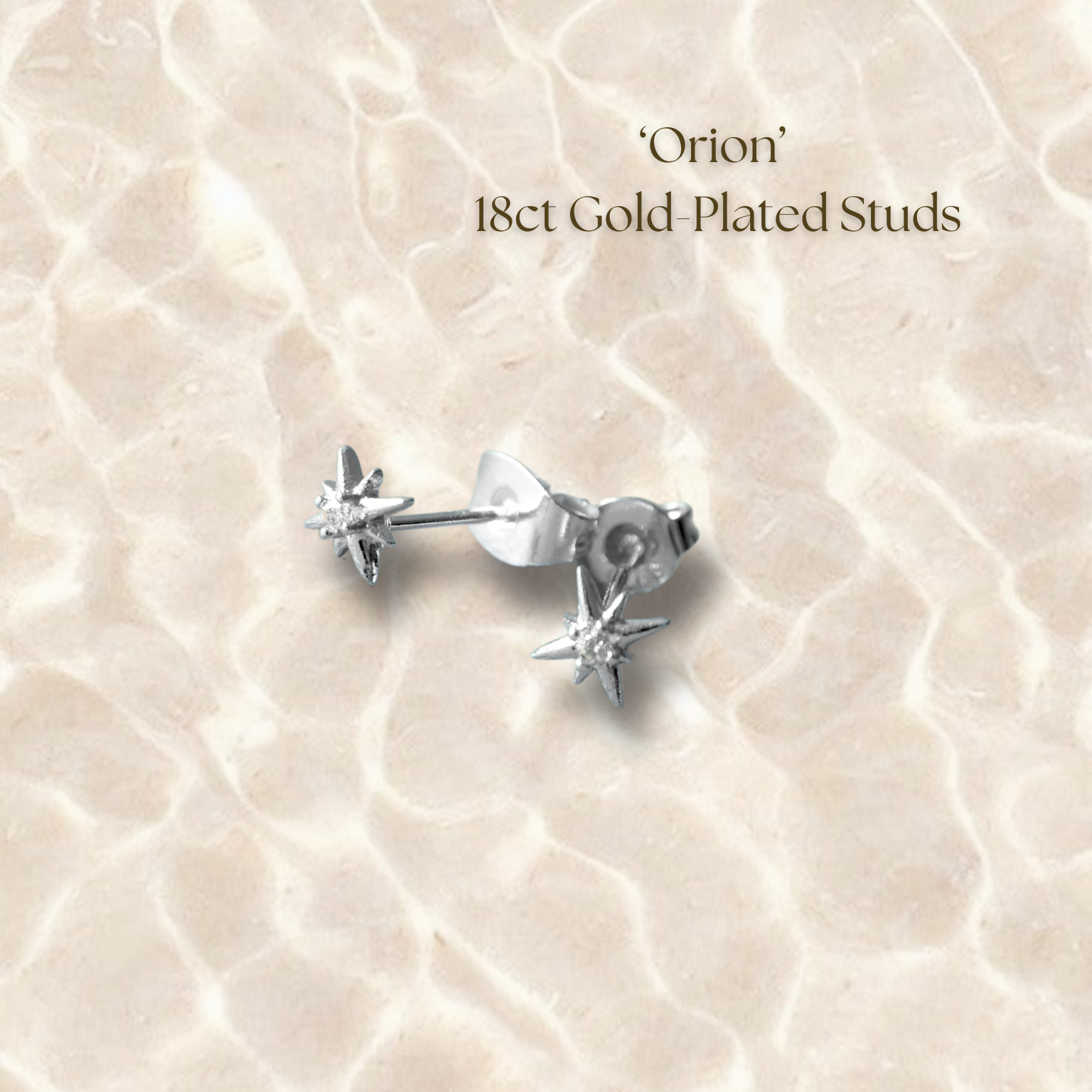Inspired by the bold energy of celestial bodies, the Orion Studs bring a little cosmic magic to your everyday. The minimalist sunburst design radiates from a single, shimmering cubic zirconia, giving these studs a fresh, funky edge while staying sleek and wearable. Crafted for those who love subtle statement pieces, the Orion Studs add just the right amount of sparkle and personality to any outfit. Perfect for the daring minimalist who isn’t afraid to stand out, these studs are your go-to for elevating even the simplest looks with a touch of cosmic chic.